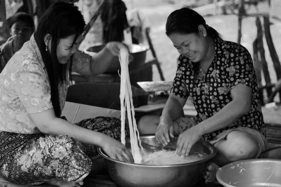 Noodles Published January 2, 2013 at 900 × 600 in Images of Cambodia: The Noodle Maker’s Morning ← Previous Next → Making noodles